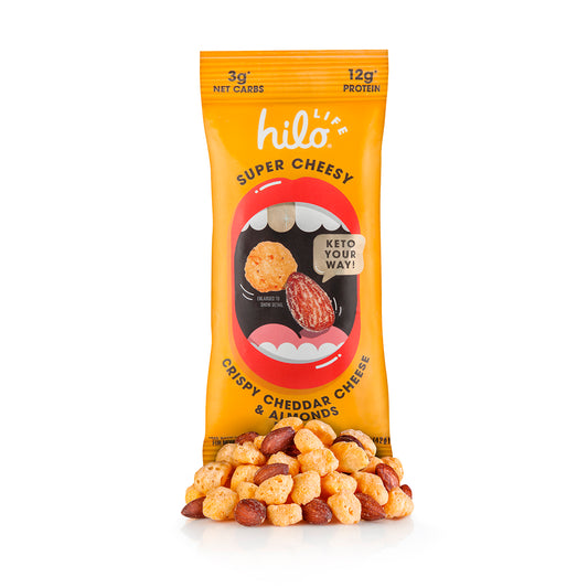Do you miss the good old days of delicious cheese dust on your fingers? Well thanks to this Hilo Life Super Cheesy snack mix, the cheese dust has returned without those extra carbs! This mix is full of healthy almonds, crunchy cheese, and a zesty seasoning that will keep you coming back for more. And with twelve grams of protein and only three net carbs in the whole pack, you’ve found the ticket to guilt-free snacking!