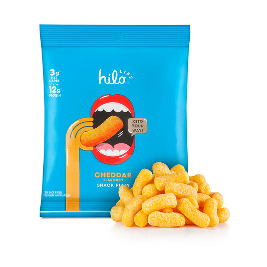 We know it can be difficult to wander the grocery store aisles filled with snacks that don’t fit into your Keto lifestyle. That’s why we’re so thankful for companies like Hilo Life and their constant drive to recreate our favorite snacks in a healthier way! And these Hilo Life cheddar snack puffs are the perfect example! If you thought cheese puffs were now a forbidden snack, think again. Hilo Life delivers the perfect crunchy puff that will make you think you misread the nutrition label Add a bag to your Keto lunch, or devour them when that midday snack craving hits. Any time is a good time for this cheesy crunch!