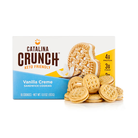 Grab your favorite Keto-friendly milk because you’ve got some cookie dunking to do! Your taste buds will be sure you fell off the Keto wagon when you take one bite of these amazing cookies from Catalina Crunch. But don’t you worry — these vanilla creme sandwich cookies have all the flavor and crunch of your old favorite cookies with only a fraction of the carbs! Catalina Crunch has taken us to Keto cookie heaven!