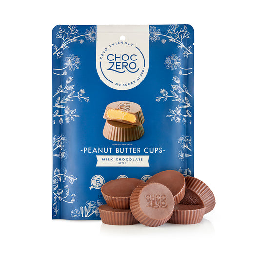 Ingredients: No Sugar Added Milk Chocolate (Cocoa Butter, Erythritol, Unsweetened Chocolate, Whole Milk Powder, Inulin, Nonfat Dry Milk, Soy Lecithin, Natural Vanilla Extract, Salt, Stevia Extract), Peanut Butter Blend (Peanuts, Salt), Milk Protein Isolate, Coconut Oil