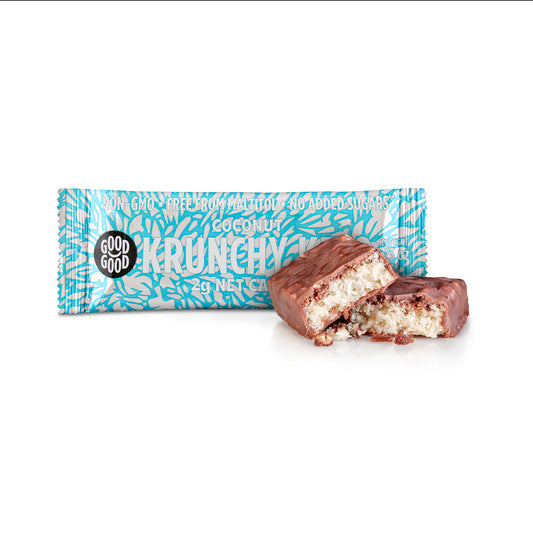 Ingredients: Coconut, milk chocolate with fibers and sweeteners (cocoa butter, inulin, oligofructose, cocoa mass, whole milk powder, skimmed milk powder, sweeteners (erythritol, stevia extract), soy lecithin, natural flavors), polydextrose, sweeteners (erythritol, stevia extract), glycerol, soy crisps (soy protein, tapioca starch, salt), cocoa butter, milk protein, hydrolyzed collagen, fat reduced cocoa, soy lecithin, salt, natural flavors.