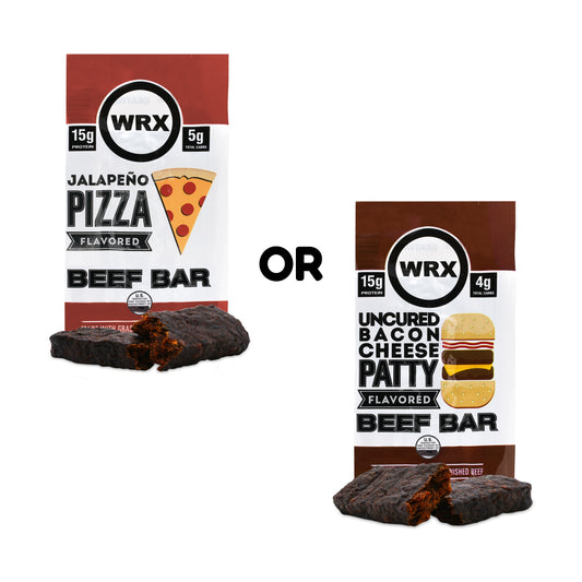 Uncured Bacon Cheesepatty Flavored Beef Bar OR Jalepeno Pizza Flavored Beef Bar